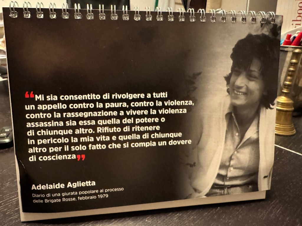 Sono le parole di Adelaide Aglietta, in passato esponente del Partito Radicale e deputata del parlamento italiano ed europeo, tratte dal “ diario di una giurata popolare al processo delle brigate rosse”, febbraio 1979”.